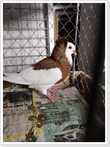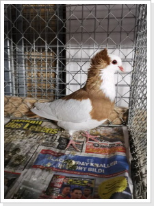 eine Süddeutsche Mönchtäubin in gelb. Züchter Christian Reul.